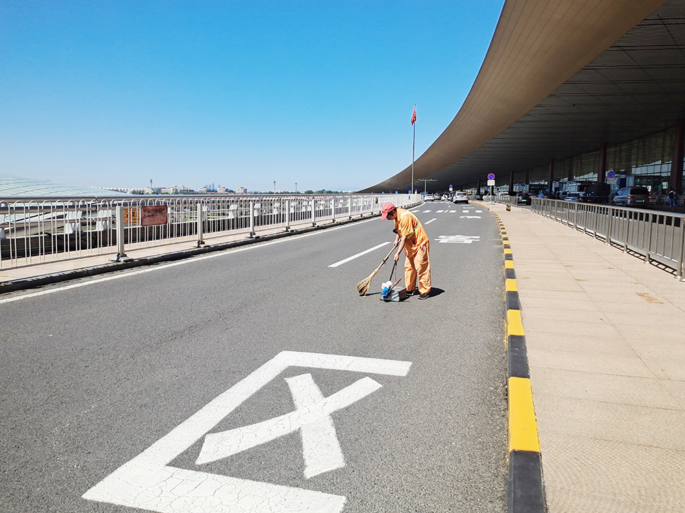 在機(jī)場公共區(qū)的各個角落,這樣的場景不斷上演:灑水車來回穿梭降溫除塵,保潔車在人行道間“見縫插針”。工裝濕了干、干了又濕,但環(huán)衛(wèi)工人的腳步從未停歇——因為這里是旅客抵達(dá)北京的第一站。這就是烈日下最動人的溫度。在這片如同烤爐般的土地上,身著橙黃工裝的環(huán)衛(wèi)工人正彎腰勞作,用汗水詮釋著“溫度”的雙重含義。