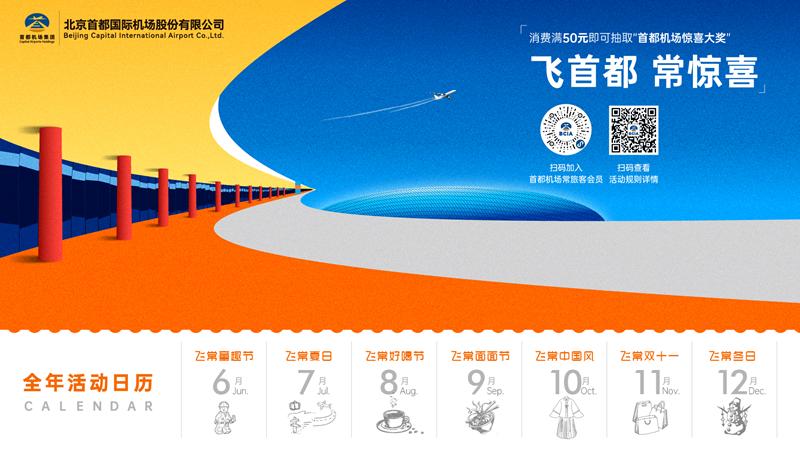 “飛首都·常驚喜”是首都機(jī)場(chǎng)貫穿全年的營(yíng)銷主題,推出營(yíng)銷品牌,全年宣傳物料、線上線下推廣均圍繞此主題展開(kāi),確保品牌認(rèn)知連貫性。在該營(yíng)銷主題下,首都機(jī)場(chǎng)結(jié)合不同節(jié)日、季節(jié)和旅客需求,推出豐富多彩的月度活動(dòng)。月度活動(dòng)改變以往機(jī)場(chǎng)全場(chǎng)發(fā)券的形式,改為以商戶自主優(yōu)惠為主,機(jī)場(chǎng)定向發(fā)券為輔,旨在用更少的成本撬動(dòng)更大的營(yíng)銷效果。