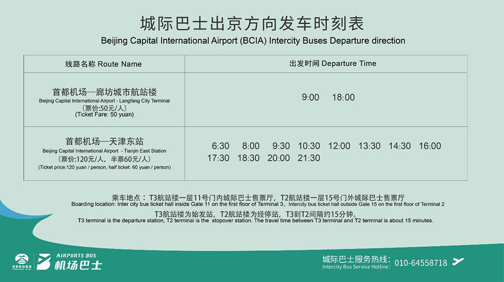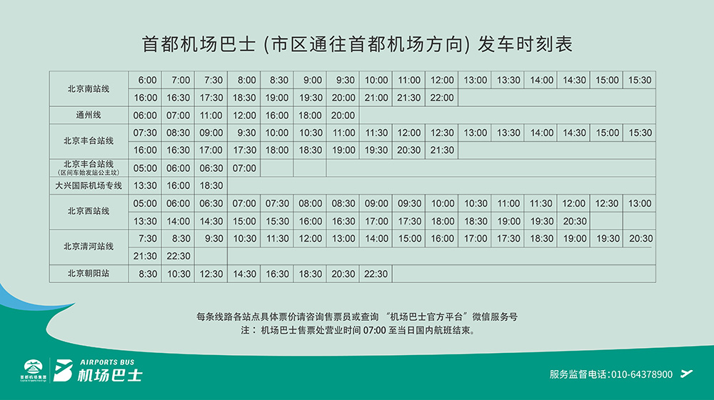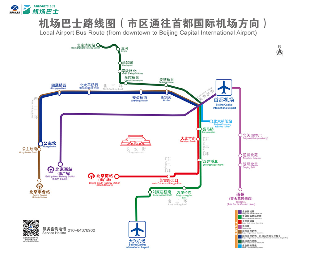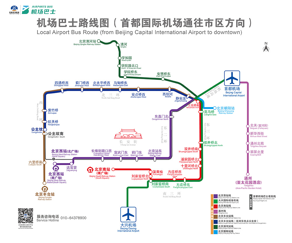 市區(qū)旅客可方便乘坐市內(nèi)機(jī)場(chǎng)巴士往返首都機(jī)場(chǎng)與公主墳、北京西站、通州、北京南站、北京清河站、北京朝陽(yáng)站、大興機(jī)場(chǎng)等地。