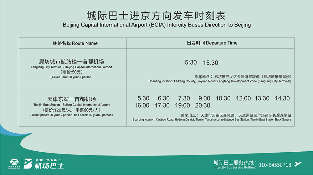 周邊城市旅客可乘坐城際巴士往返廊坊城市航站樓。
