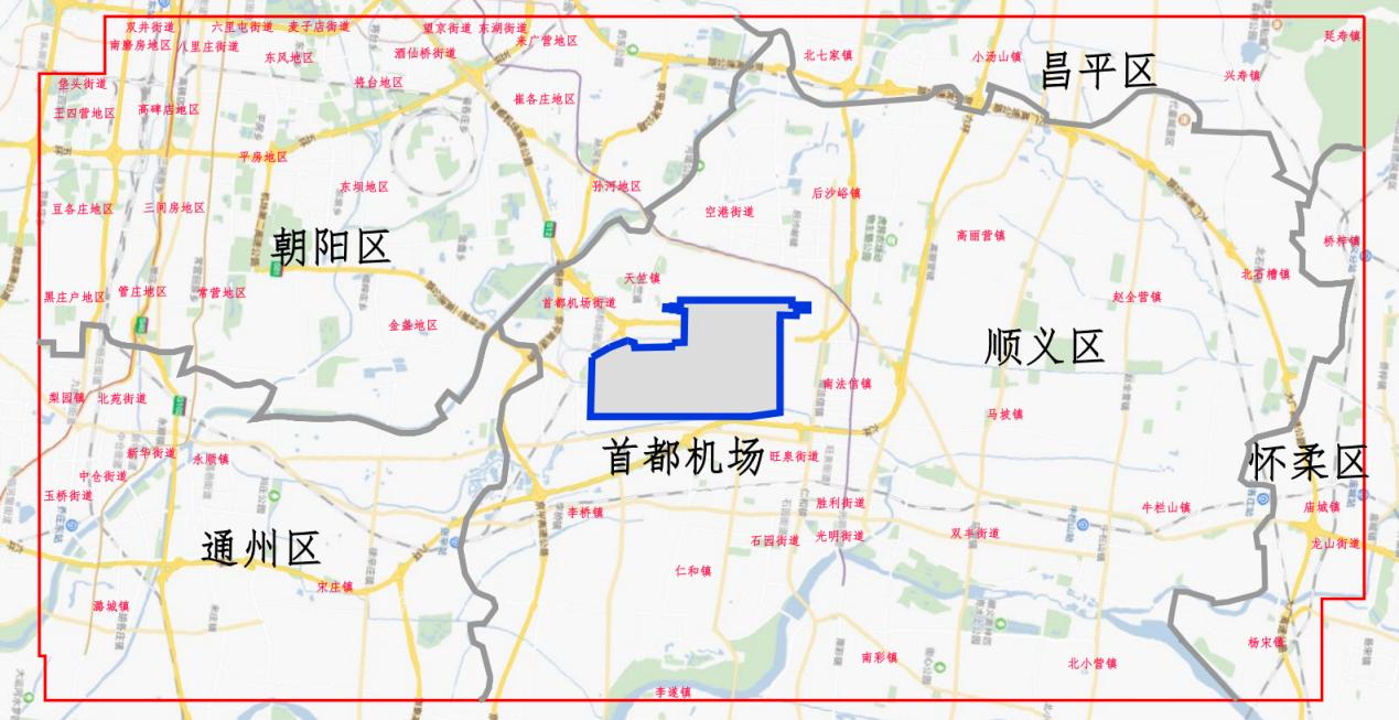 首都機場凈空重點保護區(qū)域(凈空巡視檢查區(qū)域)范圍為首都機場跑道中心線兩側(cè)各10公里、跑道端外各20公里以內(nèi)的區(qū)域,涉及順義區(qū)、朝陽區(qū)、通州區(qū)、昌平區(qū)及懷柔區(qū)部分區(qū)域,總面積約1050平方公里。