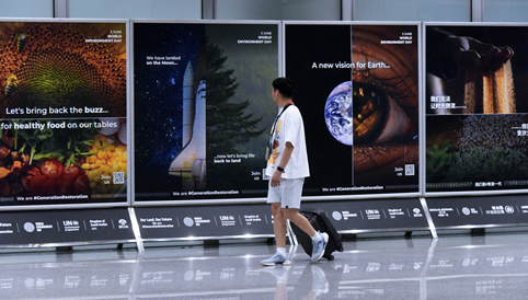 自3月27日起,首都機(jī)場攜手聯(lián)合國環(huán)境署,在首都機(jī)場3號航站樓舉辦“國際零廢物日”主題的圖片及視頻展播