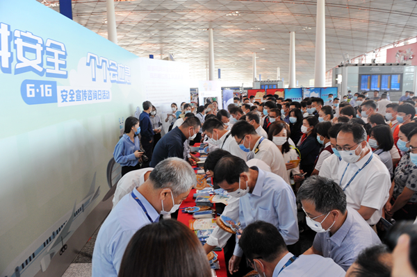 今年6月是第22個全國“安全生產月”,主題為“人人講安全、個個會應急”。6月16日,全國“安全宣傳咨詢日”當天,首都機場為進一步增強公眾安全意識,營造濃厚的安全氛圍,圍繞“安全生產月”主題,在航站樓、飛行區(qū)組織開展了“安全宣傳咨詢日”活動,集中宣傳安全生產方針政策、法律法規(guī)、民航安全規(guī)章和安全生產知識,回答群眾關心的民用航空安全問題。