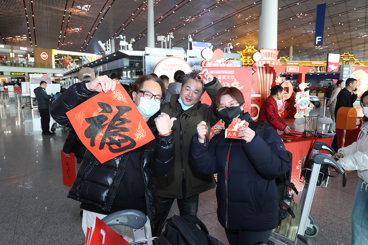 本次活動(dòng)設(shè)置了豐富的中華傳統(tǒng)非遺文化現(xiàn)場互動(dòng)體驗(yàn)和線上抽獎(jiǎng)環(huán)節(jié)。同時(shí),為持續(xù)做好一體化服務(wù)平臺線下營銷宣傳,提升旅客對服務(wù)品牌的認(rèn)知度,在現(xiàn)場活動(dòng)中,首都機(jī)場服務(wù)品牌IP“都都”與旅客開展互動(dòng),通過現(xiàn)場掃碼參加有獎(jiǎng)游戲的形式,向廣大旅客發(fā)放周邊文創(chuàng)產(chǎn)品,在熱鬧溫馨的氣氛中歡歡喜喜過新年。